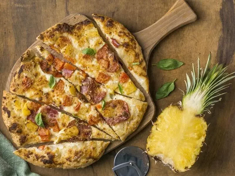 $5.45Queso mozzarella madurado, piña asada, jamón de cerdo, toque de miel picante.